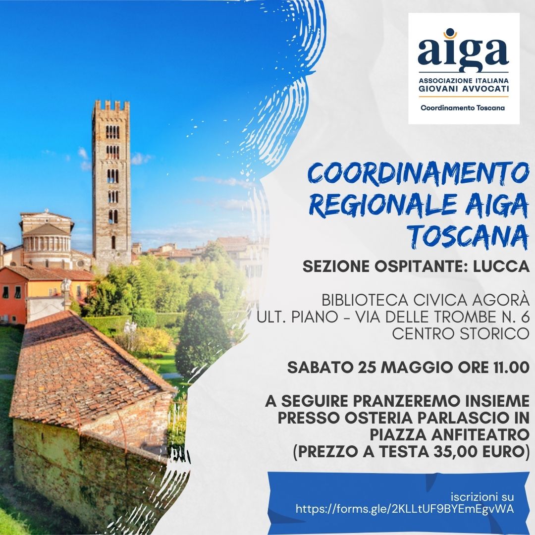 La nostra sezione ospiterà il prossimo sabato 25 maggio 2024 il coordinamento regionale di Aiga Toscana.
